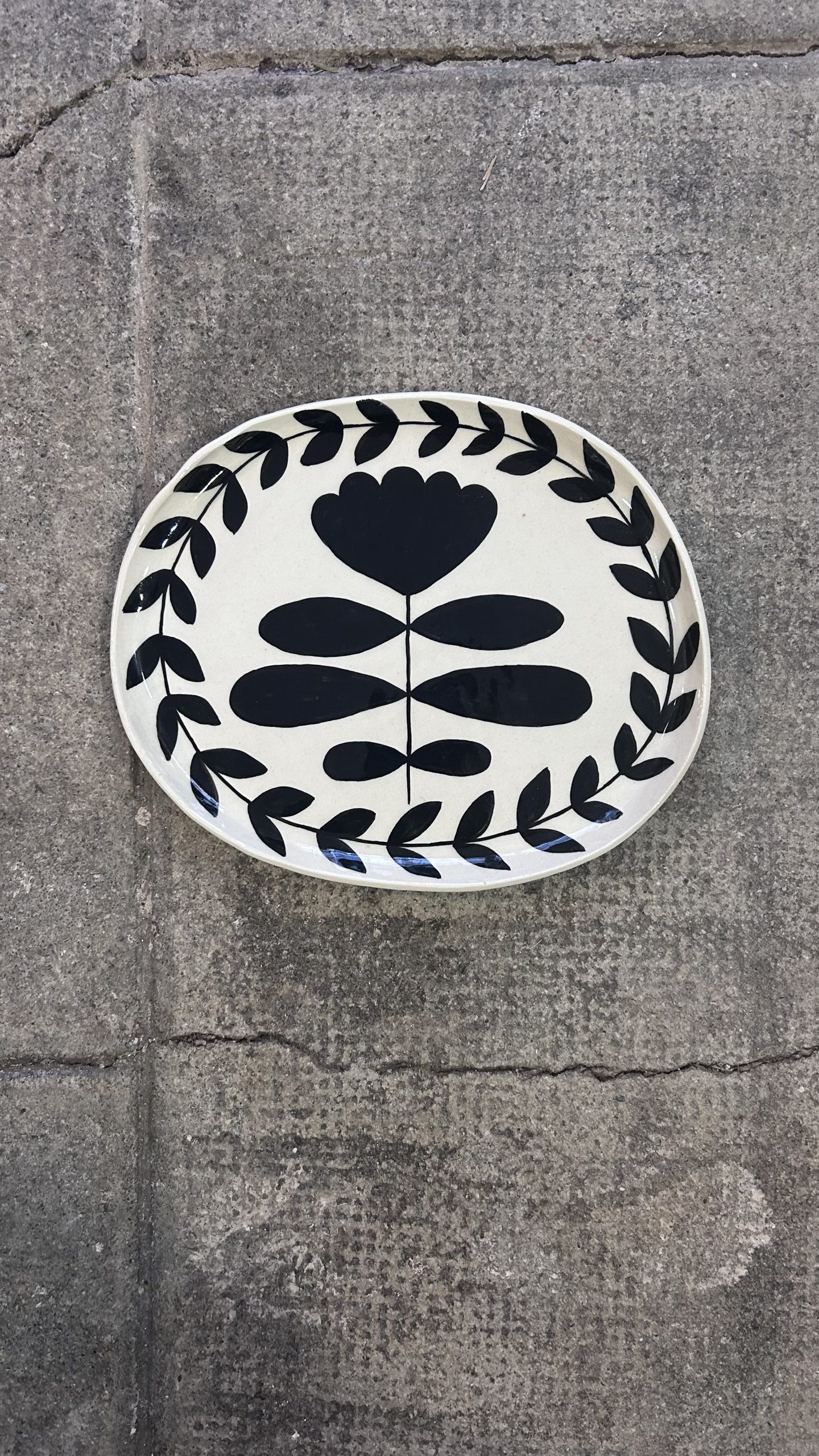 Peinte à la main à l’engobe noir. Chaque pièce est unique.